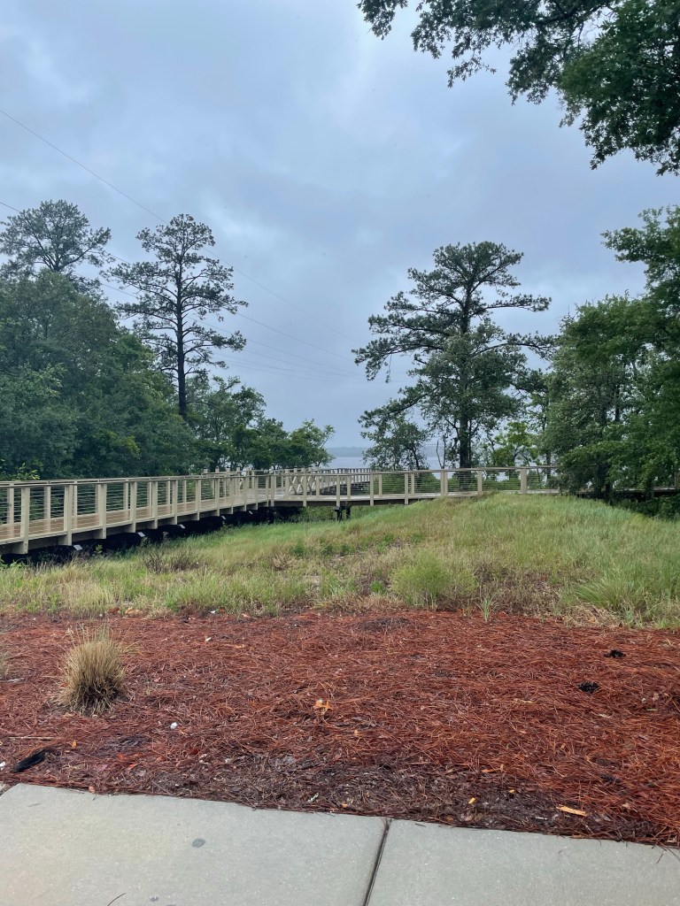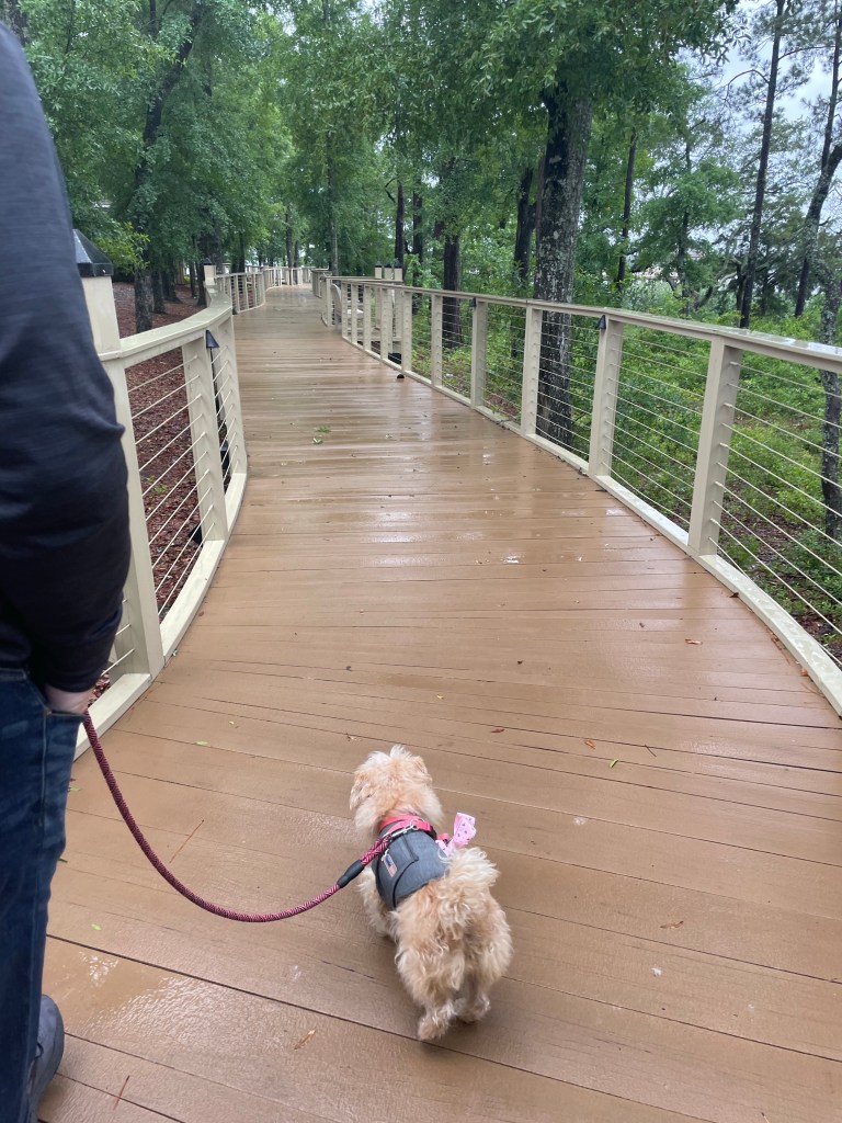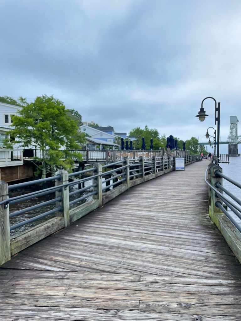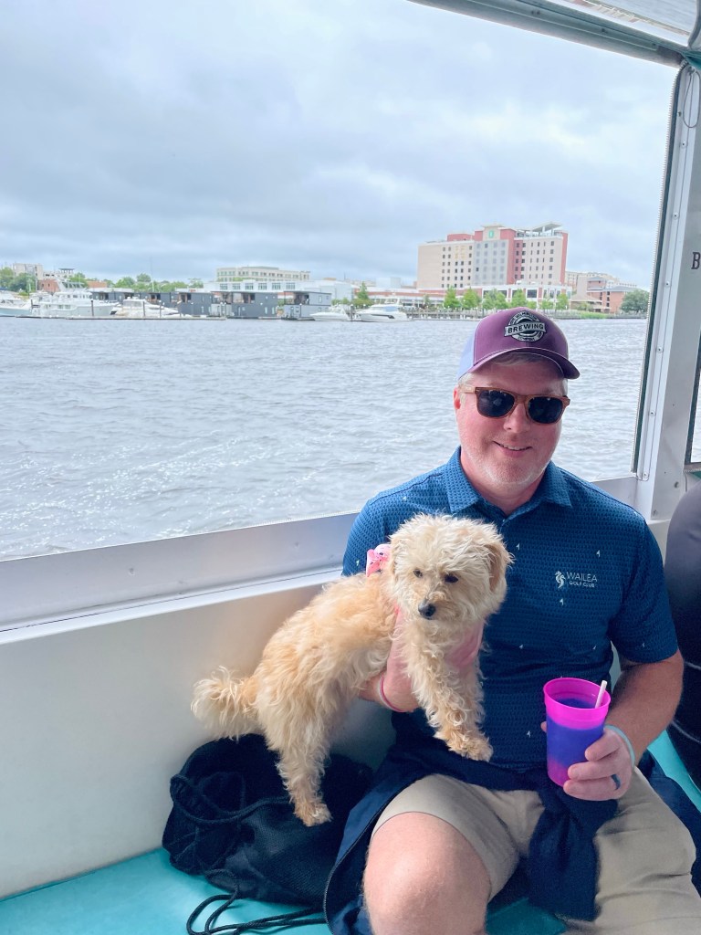 Our first trip was planned to Wilmington, NC, over Memorial Day weekend. We found a dog friendly hotel and connected with a realtor who created an itinerary for us which took us to 4 communities around Wilmington. We met with builders and toured model homes and came home overwhelmed with so many choices! Unfortunately, it rained almost continuously that weekend, so we weren’t fully able to experience all that Wilmington (and surrounding areas) had to offer. When we finally found the sun, we took a boat tour on the Cape Fear River (Sunnie’s first time on a boat!), spent time at Topsail Beach, and ate lunch on a barge along the Riverwalk.