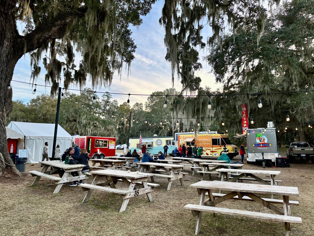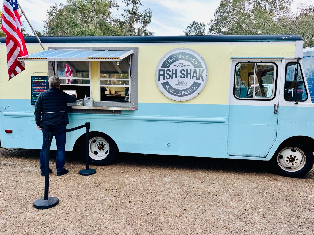 As we walked, we listened to live music from a band, complemented by the tunes of a strolling bagpiper. We treated ourselves to dinner from The Fish Shak food truck and sipped cups of delicious hot chocolate.